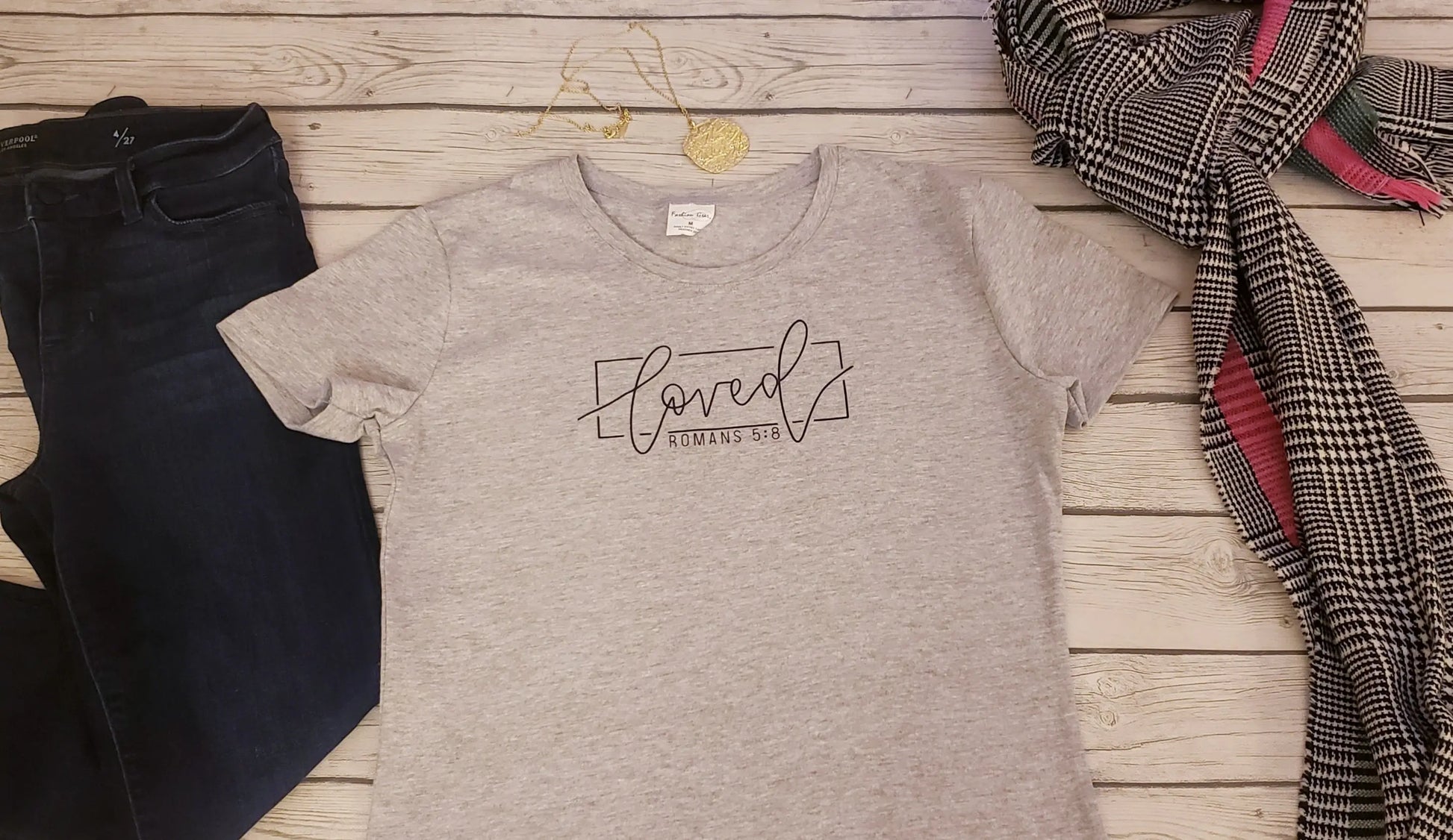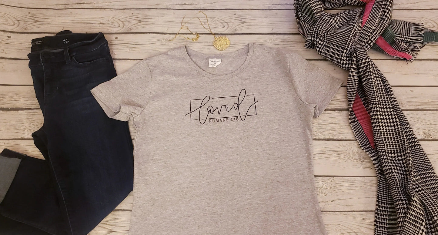 Loved Tee, Romans 5:8, Womens, Short Sleeve Crew Neck, Adult T-Shirt
