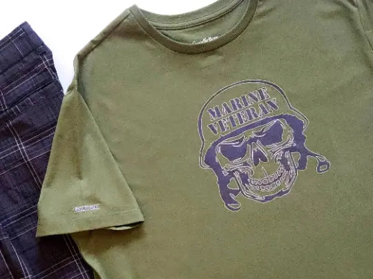 Men's Marine Veteran Tee. Cotton Crew Neck T-shirt